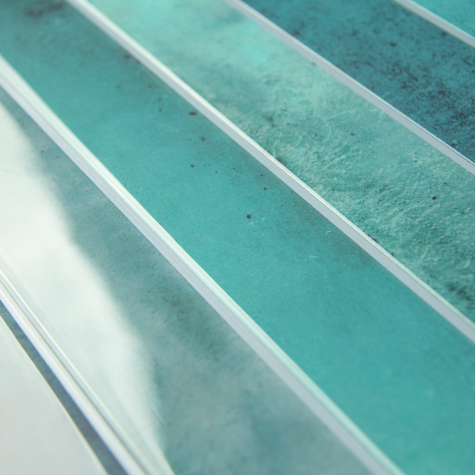 Azure er inspireret af havets klare nuancer, hvor turkis og dybere blå toner flyder naturligt sammen. De aflange rektangler skaber et moderne og harmonisk udtryk, mens farvespillet giver væggen liv og dybde. Navnet "Azure" refererer til Middelhavets intense farver – en frisk og karakterfuld tilføjelse til køkken eller badeværelse.