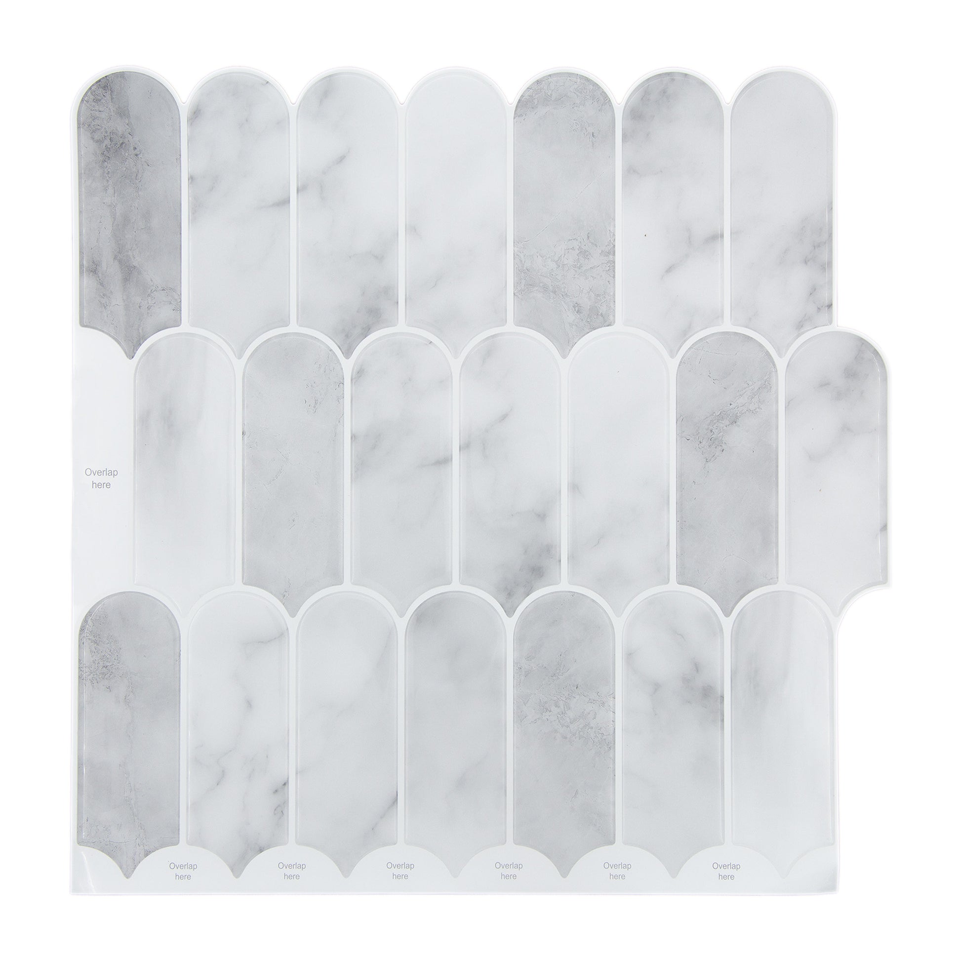 Marmor er et symbol på luksus og tidløs elegance. Disse fliseklistermærker efterligner på realistisk vis marmorens klassiske skønhed og tilføjer et elegant twist med det buede mønster. Formen tilfører en raffineret og visuelt interessant detalje til den traditionelle marmoræstetik, hvilket vil gøre en væg beklædt med disse klistermærker til en sand fryd for øjet. Brug klistermærkerne som backsplash i køkkenet, i bryggerset eller på badeværelset (dog ikke bruser) eller lige dér, hvor du drømmer om et realistisk udseende af fliser.