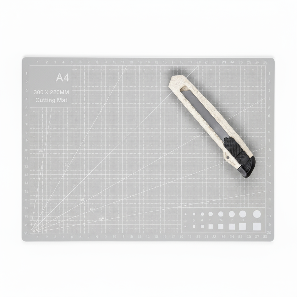 Opsætningskittet består af en skæremåtte, en skarp hobbykniv og en aluminium lineal, der sikrer skridsikre beskæringer, så du kan lave pæne og nøjagtige snit. De perfekte redskaber til at tilpasse netop dine omgivelser!